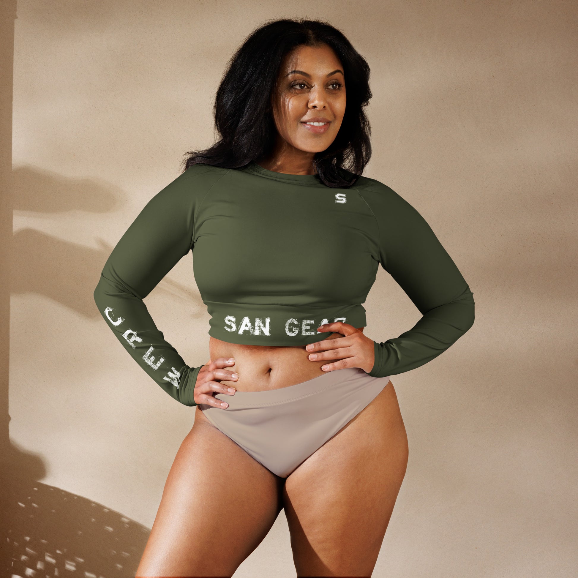 Crop Top Manches Longues Kaki - SanGear Blanc